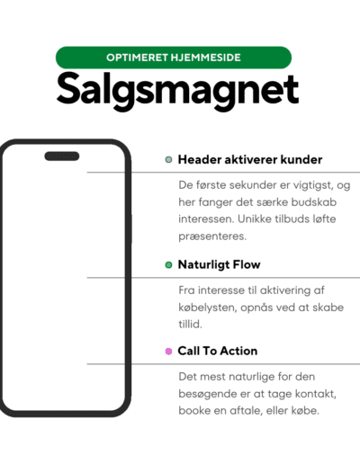 Din hjemmeside skal vise, hvem du er, og hvad din forretning står for. Den er dit ansigt udadtil på nettet og skal overbevise nye kunder om, at de skal vælge dig. Den skal hjælpe dig med at få de rigtige henvendelser fra kunder, der har brug for det, du tilbyder.